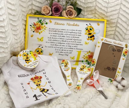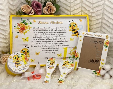 - Optional se poate adauga setului si o rama foto pe care o puteti oferi parintilor in dar